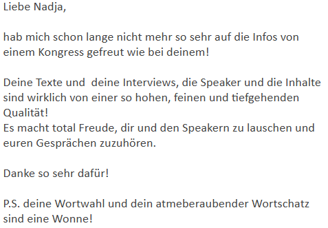 Wenn du die Inhalte und Bonusse des Online Kongresses besitzen möchtest, um sie nach dem Kongresszeitraum in Ruhe zu konsumieren, hast du die Möglichkeit, das SILVER oder GOLD Kongresspaket zu kaufen.